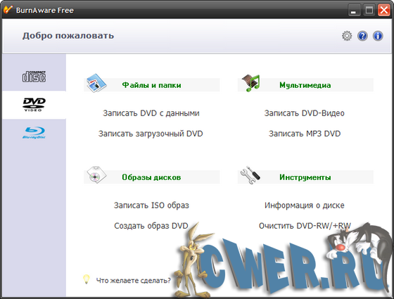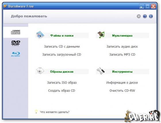 BurnAware Free - относительно небольшая, бесплатная и простая в использовании программа для записи информации и музыкальных композиций на CD, DVD, Blu-Ray и HD-DVD диски, которая пригодится как опытным пользователям, так и новичкам. BurnAware поддерживает работу со всеми типа оптических дисков (включая CD-R/RW, DVD-R/RW, DVD+R/RW, BD-R/RE, HD-DVD-R/RW и DVD-RAM) и аппаратными устройствами записи. Утилита поддерживает создание образов, способна писать мультисессионные диски, имеет опцию проверки записанного содержимого, работает под операционными системами Windows 98/ME/NT/2000/XP/Vista (32/64-bits).