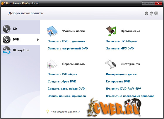 Простая и в тоже время мощная программа для записи и копирования любых дисков - CD, DVD, Blu-Ray, а также копирования CD и DVD. Программа позволяет выполнять все основные задачи по записи: работа с носителями CD/DVD, Blu-Ray; запись Audio CD и DVD-Video; копирование и прожиг образов и многое другое. Имеется многоязычный интерфейс, включая русский и поддержка Windows Vista.
