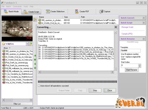 Resize Pictures Plus - простая в использовании программа для изменения размера и формата ваших фотографий в пакетном режиме. Позволяет пользователю в пакетном режиме изменить размер, качество, наложить водяной знак на картинку и конвертировать фотографии в один из форматов таких, как JPG, BMP, PNG, TIF, GIF, PCX и TGA.