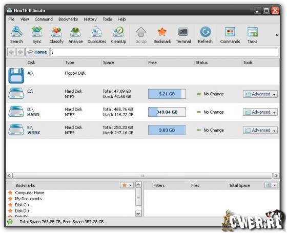 FlexTk Ultimate - это объединенный в одной оболочке набор инструментов для управления файлами. Программа позволяет классифицировать и сортировать файлы по категориям, копировать и перемещать файлы по точкам и закладкам, анализировать загрузку площади диска, идентифицировать "горячие точки" устройств хранения информации, осуществлять поиск и удаление дубликатов файлов, генерацию сигнатур для файлов и проверку целостности файлов и папок, освобождать дисковое пространство и многое другое. FlexTk состоит из пяти инструментов: FlexCls, FlexSize, FlexDup, FlexHash и FlexSig, которые после тщательного анализа диска готовы к выполнению конкретно отведенной им задачи. Все отчеты о результатах анализа могут быть экспортированы в TXT, CSV или HTML текстовые файлы. Обладая гибкостью и удобством в использовании, FlexTk доступен и понятен как новичкам, так и опытным пользователям.