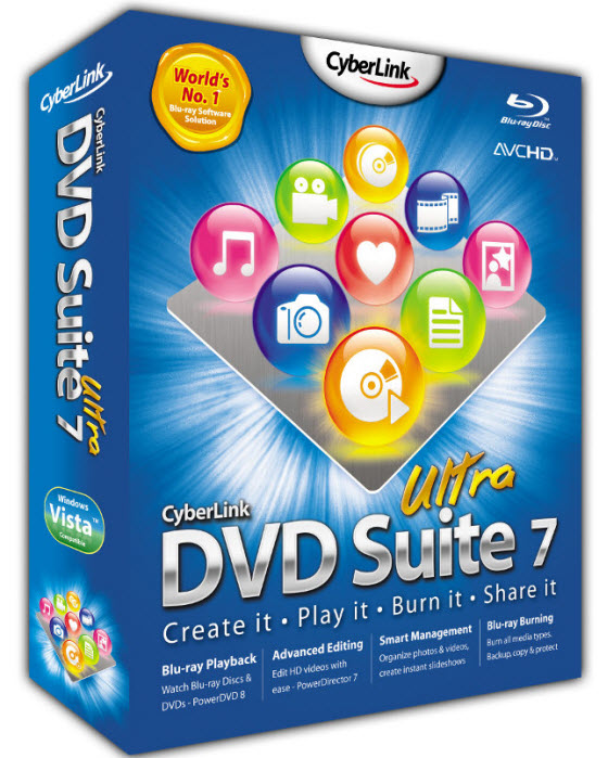 CyberLink DVD Suite - полный спектр программных приложений: запись на DVD, Blu-ray, HD DVD, проигрывание DVD, видео и музыки, создание слайд-шоу, редактирование видео, анимации, обработка фотографий и нарезка музыкальных клипов. Запись файлов, конвертирование CD музыки, дизайн значков. Архивирование данных приложений, файлов и папок.
