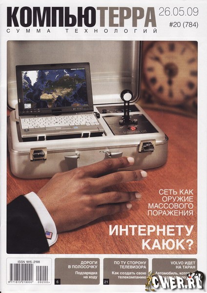 Обложка (особенно в уменьшенном виде) может быть слегка непонятной, но посвящена она статье Берда Киви про грядущие кибервойны. Смогут ли США в случае необходимости "вырубить Интернет", и будут ли они отвечать ядерными ударами в ответ на хакерские, и кто и как будет принимать соответствующие решения.