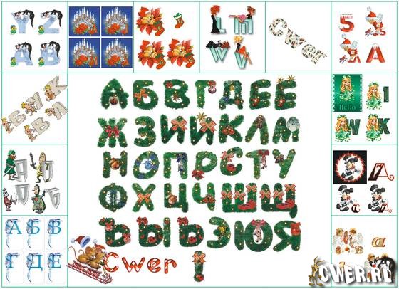 Коллекция из 40 наборов букв и заглавных буквиц в различных графических форматах (JPG, PNG, PSD, GIF) + бонус: бланки для поздравительных новогодних писем