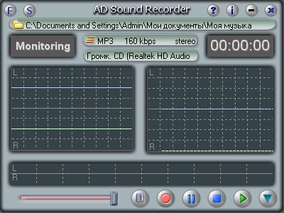 AD Sound Recorder - небольшая программа для записи аудио. AD Sound Recorder поддерживает три вида форматов звуковых файлов - WAV, MP3 и WMA. С AD Sound Recorder Вы сможете записать звук с микрофона, потоков аудио из Интернета, или музыку, которая проигрывается Winamp, Windows Media Player, Quick Time, Real Player, Flash, games, и т.д. не теряя качества. AD Sound Recorder предоставляет зрительные образы входящего звука. Вы можете настроить громкость записи, приостанавливать или возобновлять запись по своему желанию.