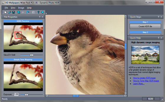 Dynamic Photo HDR — программа для создания динамических HDR фотографий и позволяет добавлять к ним различные эффекты. Основными ее особенностями являются простота использования, замечательные результаты и возможность создания HDR из одной фотографии. Последнее будет особенно полезно для владельцев фотокамер без функции автобрекетинга. Программа умеет работать с файлами формата RAW, полученными с разных цифровых камер. Так же позволяет корректировать изображения по ключевым точкам вручную и автоматически. Обладает такими возможностями, как автоматическая подгонка изображений, ручная корректировка по ключевым точкам, преобразование диапазона яркостей HDRI к диапазону яркостей, отображаемых монитором. В дополнение к этому Dynamic Photo HDR поддерживает некоторые интересные эффекты - преобразование в черно-белые снимки или эффект Ортона. В программе также есть метод для улучшения изображения, работающий на основе разных тонов.