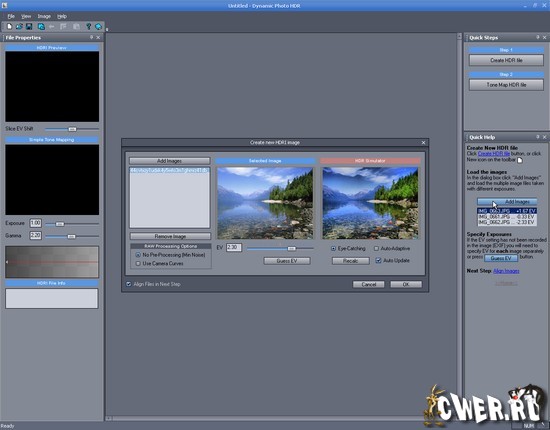 Программа работает с файлами в формате HDR, а также с файлами RAW, полученными с разных цифровых камер.