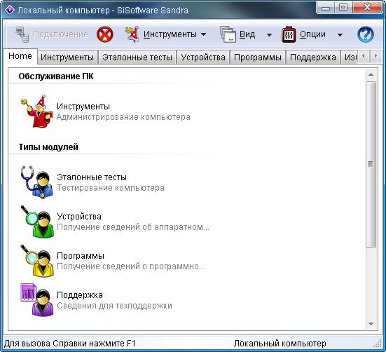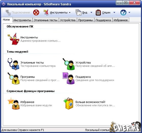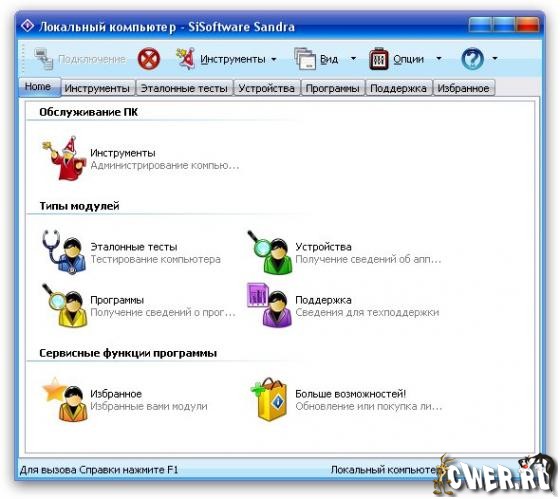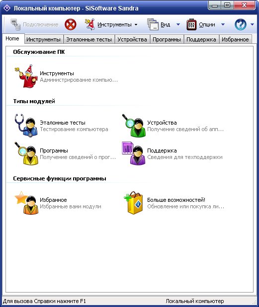 SiSoftware Sandra - это системный анализатор для 32-х и 64-битных версий Windows, включающий в себя тестовые и информационный модули. Sandra старается превзойти другие подобные утилиты и показать реальную картину, объединяя в одной программе возможности для сравнения производительности как на высоком, так и на низком уровне. Вы можете получить сведения о процессоре, чипсете, видеоадаптере, портах, принтерах, звуковой карте, памяти, сети, Windows, AGP, соединениях ODBC, USB2, Firewire, и других.