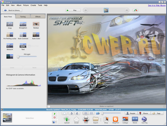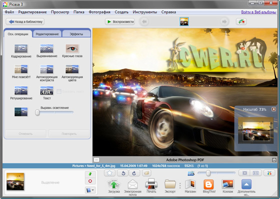 Picasa – бесплатная программа от Google для организации, редактирования и печати фотографий, хранящихся на вашем компьютере. Основной ориентацией приложения является работа с цифровым фото содержимым на персональном компьютере пользователя. При каждом запуске Picasa автоматически сканирует жесткие диски на предмет новых фотографий и добавляет их к себе в библиотеку по датам и именам папок, в которых они оригинально находились, выстраивая их в цепочку. Позволяет создавать фотоальбомы, записывать их на оптические носители, производить базовое редактирование и применять различные эффекты. Третья версия программы поддерживает еще больше - до миллиона - фотографий на компьютере! Кроме того, внесено множество других усовершенствований, которые должны вам понравиться.