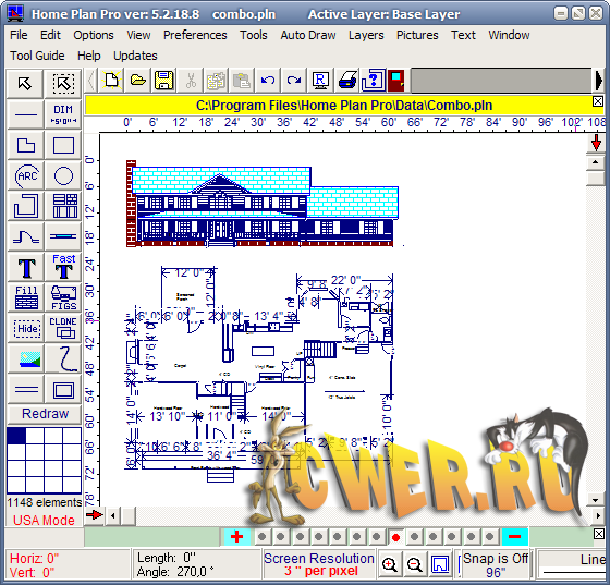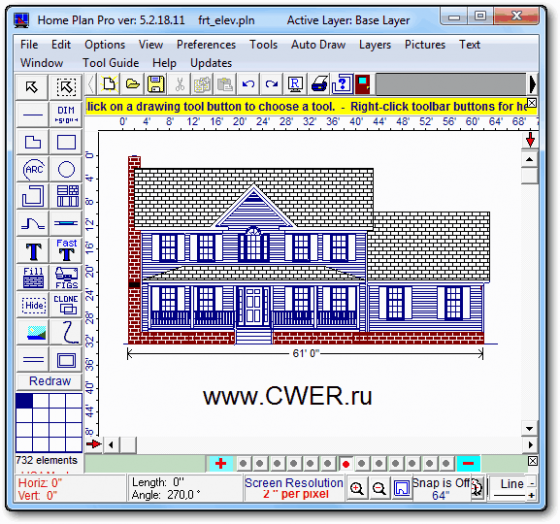 Home Plan Pro - отличная программа для быстрого и легкого черчения плана помещений, мест и архитектурного дизайна. Программа предлагает множество различных инструментов, которые помогут вам начертить план вашего дома, квартиры, жилых помещений и т.д. Пользователю предлагаются такие инструменты, как линии, овалы, прямоугольники, черчение стен, дверей, окон, арок, кирпичных стен, вставка изображений, текста, дублирование предыдущего элемента и многое другое.