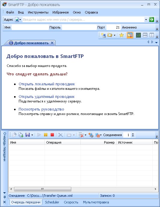 SmartFTP - это FTP клиент, позволяющий передавать файлы между вашим локальным компьютером и сервером в сети Интернет. SmartFTP предоставляет множество возможностей и обеспечивает защищённые, надёжные и эффективные передачи. Всё это делает SmartFTP мощным средством работы в области передачи файлов.