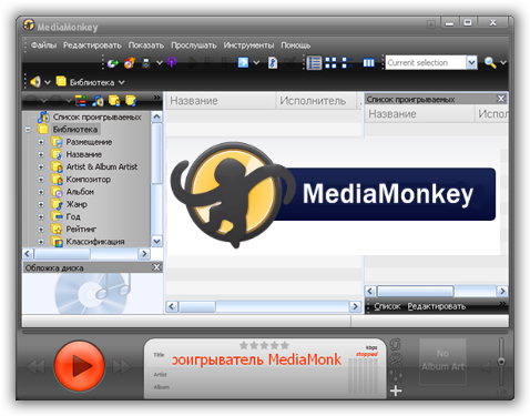 MediaMonkey - позволяет упорядочить музыкальную коллекцию, находящуюся на жестком диске, CD и в локальной сети - быстро отредактировать теги (вручную или автоматически с помощью данных из базы freedb.org), найти неполные или повторяющиеся файлы, переконвертировать файлы в другие форматы, записать музыку с CD (в форматах OGG, MP3 или WMA) или на CD, а также загрузить в mp3-плеер. Поддерживается работа с CD и файлами OGG, WMA, MPC, FLAC, APE, WAV и MP3. В MediaMonkey встроен проигрыватель с удобным интерфейсом и поддержкой модулей Winamp. Может интегрироваться с Nero для записи дисков.