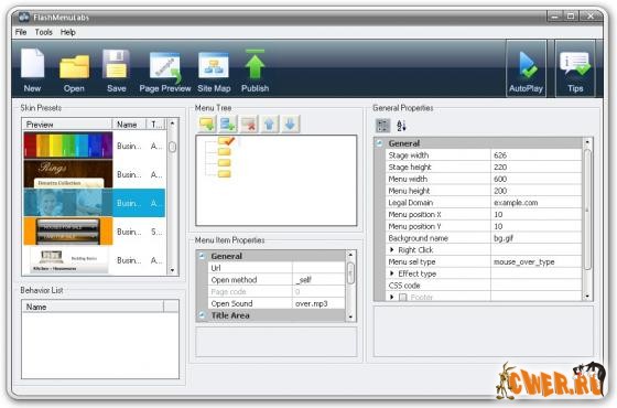 Flash Menu Labs - это мощный инструмент для быстрого создания Flash (Флеш) меню для Вашего вебсайта. Даже новички без знания ActionScript могут успешно создавать меню за считанные минуты! Вы хотите современное Flash (Флеш) меню с впечатляющими эффектами, анимацией притягивающей взгляд и нетривиальной структурой, но не хотите тратить месяцы на кодирование, отладку и настройку внешнего вида? С Flash Menu Labs Вы получите все эти и многие другие возможности всего за несколько минут!