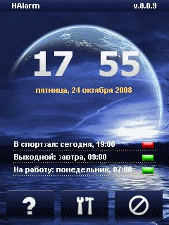 HAlarm - будильник позволяющий устанавливать параметры, которые вам требуются: дни недели, время и мелодия (возможно mp3, ogg). После ввода необходимых параметров будильников программа разбудит вас, запустившись и проиграв выбранную мелодию. Будильник, который будит вас в данный момент, может быть перенесен на несколько минут позже.