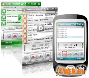 Resco Audio Recorder - программа, объединяющая в себе диктофон и проигрыватель звуковых файлов. Довольно проста в обращении. Главное достоинство - записывает голос в формат MP3.