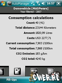 MASPware AutoManager - программа для владельцев автомобилей. Позволяет вести учет производительности и затратности транспортных средств. Можно рассчитать расход бензина, а также вести журнал поездок, список запланированных дел и многое другое.