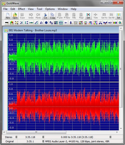 GoldWave - очень мощный звуковой редактор. Предназначен для проигрывания, редактирования, смешивания и анализа звуковых файлов. Умеет работать с большими файлами, быстрее других программ. Имеет много разных эффектов. Понимает множество форматов MP3 WAV AU IFF VOC SND MAT AIFF raw data, также умеет конвертировать из одного формата в другой. Умеет записывать файлы с audio CD.