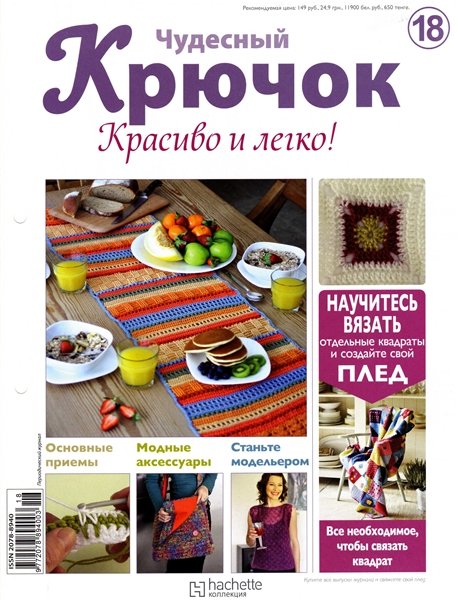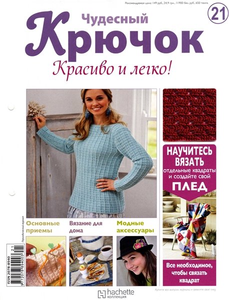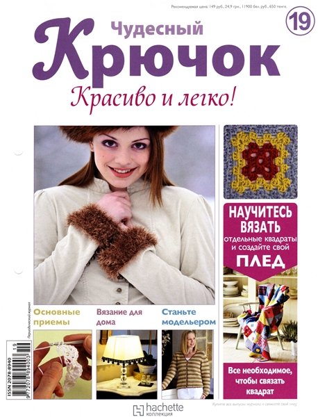 Коллекция «Чудесный крючок. Красиво и легко!» — это простой и доступный способ освоить искусство вязания крючком. С каждым номером вы сможете научиться различным способам вязания крючком, а также познакомитесь с новым узором, выполнение которого представлено пошагово с помощью простых объяснений и фотографий. В каждом выпуске предлагаются прекрасные модели для вас и вашего дома. Откройте в себе талант и познайте радость творчества! Регулярно получая описания простых в исполнении моделей, вы соберете собственную коллекцию.