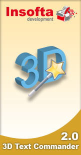 Программа для создания трёхмерных текстов. Созданные с помощью Insofta 3D Text Commander трехмерные тексты можно использовать для создания баннеров, кнопок, логотипов и т.п. Позволяет очень быстро добиться требуемого результата благодаря встроенному помощнику.