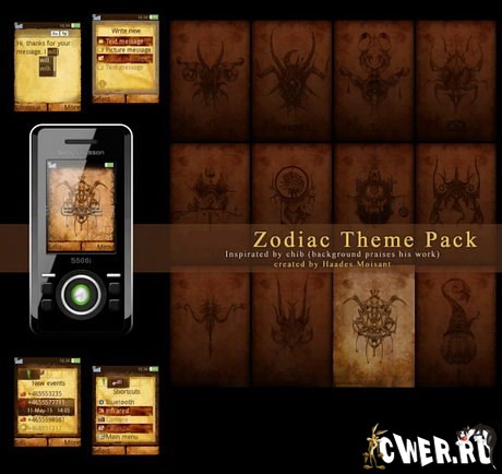 Шикарная тема для Sony Ericsson в насыщенных темно-коричневых тонах выполненная в 12 различных вариантах специально под каждый знак зодиака.