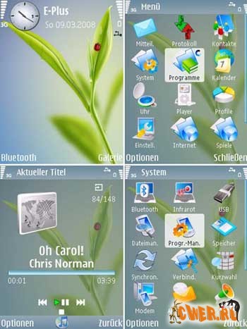 11 абстрактных тем оформления для телефонов на базе Symbian 9.1/9.2. Все темы идут с заменой стандартных иконок!