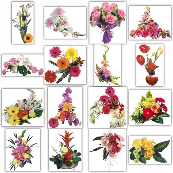 Незаменимый клипарт для профессионального дизайнера содержит высококачественные фотографии букетов цветов в формате JPG и альфа каналы к ним в файлах PSD. Также в архив включен PDF-файл с предпросмотрами и возможностью загружать непосредственно в Photoshop как фотографии букетов, так и маски к ним.