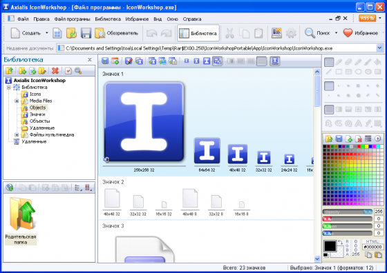 Axialis IconWorkshop - мощная программа для создания высококачественных профессиональных иконок, а тажке для их редактирования. Основана на многооконном интерфейсе, что даёт возможность одновременно редактировать сразу несколько иконок. Среди нестандартных инструментов редактора, нужно отметить градиентные заливки и 3D эффекты. При редактировании иконки можно пользоваться многоуровневой отменой действий. Программа умеет создавать иконки (ICO), а также ICL и DLL файлы с иконками. Может модифицировать иконку прямо в приложении или библиотеке. Импортирует JPEG и BMP файлы. Имеет понятный интерфейс и поддержку Windows Vista.