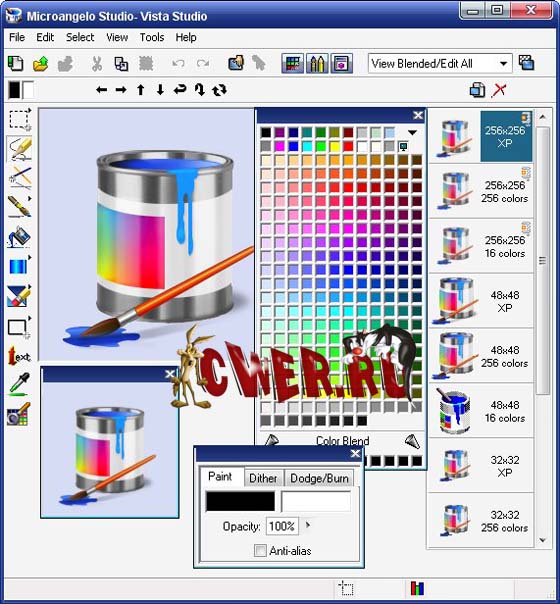Axialis IconWorkshop - мощная программа для создания высококачественных профессиональных иконок, а тажке для их редактирования. Основана на многооконном интерфейсе, что даёт возможность одновременно редактировать сразу несколько иконок. Среди нестандартных инструментов редактора, нужно отметить градиентные заливки и 3D эффекты. При редактировании иконки можно пользоваться многоуровневой отменой действий. Программа умеет создавать иконки (ICO), а также ICL и DLL файлы с иконками. Может модифицировать иконку прямо в приложении или библиотеке. Импортирует JPEG и BMP файлы.