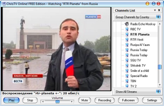 ChrisTV Online! - это программа для превращения вашего компьютера в телевизор и радиоприемник. ChrisTV Online! позволяет просматривать огромное количество ТВ-каналов, радиостанций и другого аудио-видео материала, транслируемого через сеть Интернет. Для всего этот используется только соединение с Интернетом, и не нужно никакого дополнительного оборудования. В базе программы ChrisTV Online! имеется более 1800 телевизионных каналов и более 600 радиостанций из 100 стран мира, список которых обновляется ежедневно. Выбор каналов можно производить по стане, типу, категории, языку, названию станции.