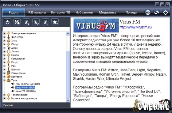 Jobee – это удобный плеер, предназначенный для комфортного прослушивания интернет радиостанций и аудио-подкастов, просмотра интернет-телевидения, чтения RSS-лент. Программа запомнит до какого момента вы прослушали аудио-подкаст или какую последнюю радиостанцию вы слушали. Он сам скачает Вам обновления в RSS-лентах и сообщит об этом нотификатором в правом нижнем углу экрана.