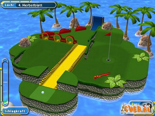 Полностью трёхмерный симулятор известной игры. Здесь реализованы правила настоящего Мини гольфа. Помимо этого игра обладает следующими особенностями: 72 вида дорожек, сгруппированные в 4 уровня, в зависимости от уровня сложности. 4 вида окружения: два открытых уровня и два зала в помещении. Скачай «Мини-гольф Клуб» и ты увидишь потрясающие эффекты окружения: насекомые, листья, текущая вода и т.д. Статические и динамические тени. Указатель с индикатором силы удара.