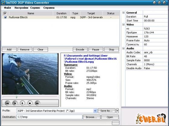 ImTOO 3GP Video Converter RN-2 - новейшая версия популярнейшего конвертера, работающего с форматом 3 GP, применяемом в большинстве сотовых телефонов. Жмет полуторачасовой фильм до 50 МВ!