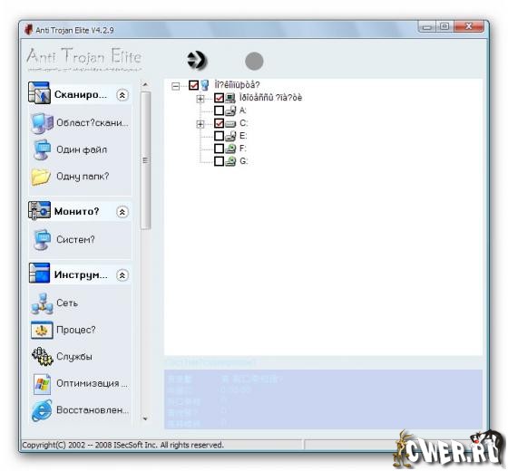 Программа для очистки компьютера от таких вредоносных файлов, как трояны, кейлогеры и пр. Anti Trojan Elite сканирует не только жесткий диск (включая архивы ZIP CAB), но и смотрит на то, какие процессы запущены. Также Anti Trojan Elite располагает менеджером сетевых процессов, при помощи которого можно определить, где запущен нежелательный процесс. Кроме этого, вы можете просмотреть ключи и значения реестра и удалить подозрительные, починить Internet Explorer, оптимизировать работу Windows вообще. Программа имеет опцию отката.