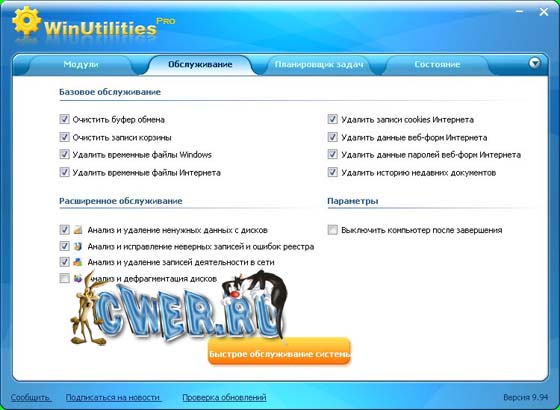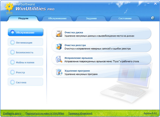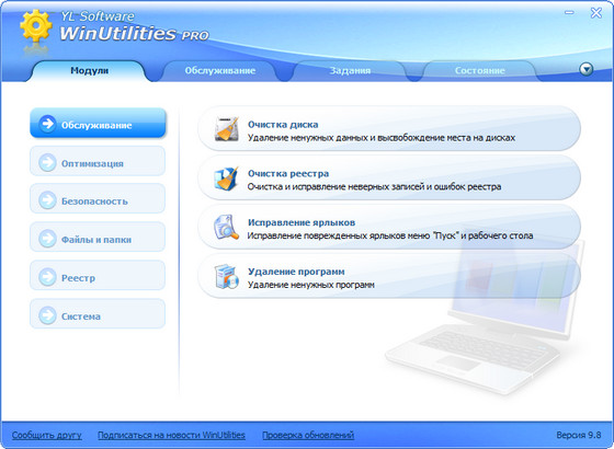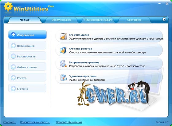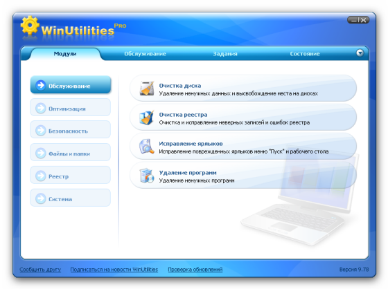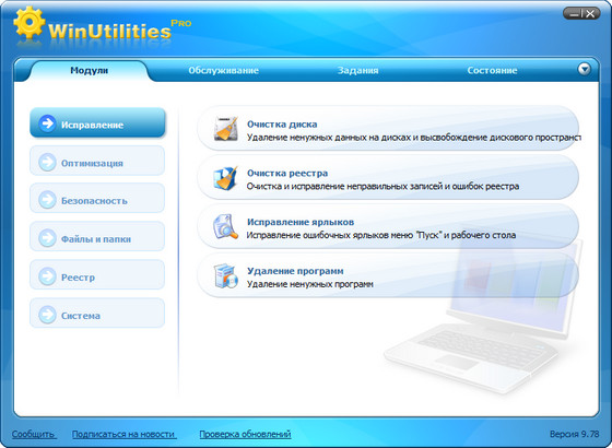 WinUtilities - набор утилит, предназначенных для настройки операционных систем семейства Windows. WinUtilities позволяет находить и удалять критические неисправности, неправильные ссылки и ключи в реестре, поможет правильно удалить приложения и программы, а также очистит историю интернета, cookies и многое другое. Также в программе есть возможность настроить автозапуск программ и изменять скрытые опции ОС.