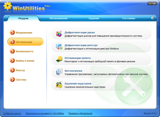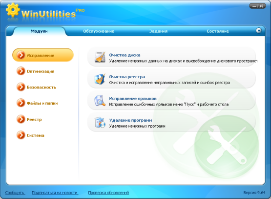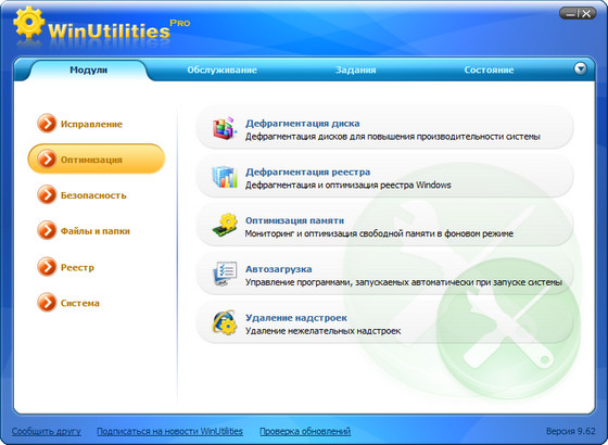 WinUtilities - набор для настройки вашей системы, содержащий более 20 инструментов для увеличения и настройки производительности вашего компьютера. Программа предлагает привлекательный и легкий в использовании интерфейс, который организует все задачи по категориям и предоставляет графическую статистику там, где это возможно.