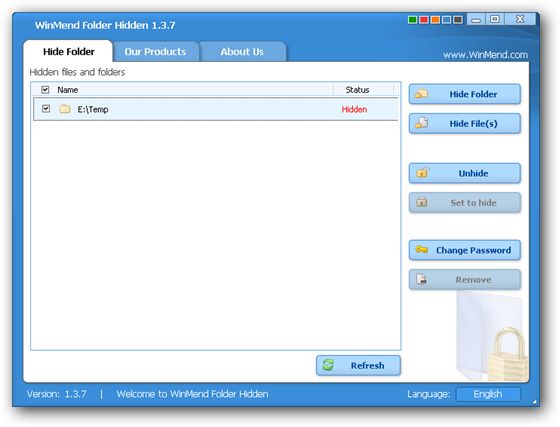 WinMend Folder Hidden поможет пользователю скрыть файлы и папки от несанкционированного доступа. Причём скрытые файлы не будут видны никакой другой программой, под другой учётной записью или даже другой ОС. Поддерживает все типы носителей. Для отображения файлов и доступа к ним надо ввести пароль.