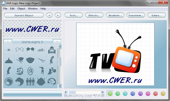 AAA Logo - эта программа быстро и легко поможет Вам разработать профессиональный логотип для печати или опубликования в Интернете. Сначала выберете один из 60-ти готовых шаблонов или создайте свой. Программа располагает более чем 2000 объектами для размещения на логотипе. При работе используется векторная графика, поэтому объекты могут легко масштабироваться и вращаться. Большое количество настроек позволит Вам получить почти неограниченное количество комбинаций объектов и эффектов.