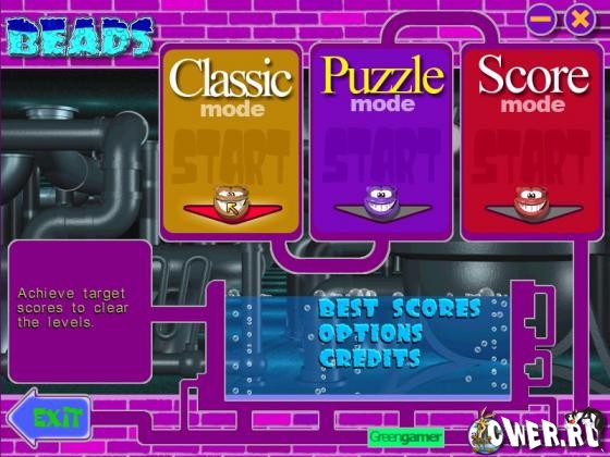 Вам предстоит нелегкая задача выстроить в ряд хотя бы три бусинки. Загвоздка в том, что игровые поля (всего их четыре) имеют форму изогнутых водопроводных труб, в которые следует поместить разноцветные значки.
