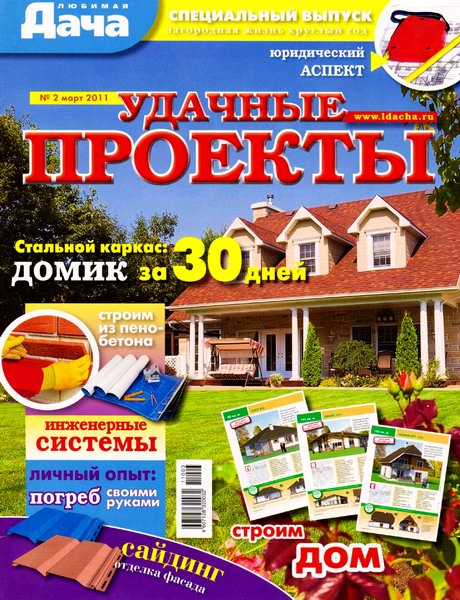 Популярный иллюстрированный журнал о загородной жизни круглый год. Информация на любой вкус: советы и рекомендации о том, как обустроить дачный участок, как построить дом; инструкции для тех, кто стремится сделать дачный ландшафт красивым и уютным; полезные советы о нахождении на садовом участке и за его пределами; информация о том, как выращивать овощи и фрукты на дачном участке и что делать с урожаем.