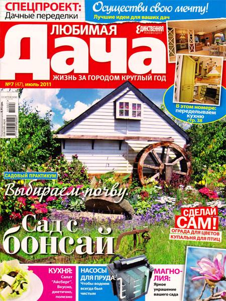 "Любимая дача" - популярный иллюстрированный журнал о загородной жизни круглый год. Информация на любой вкус: советы и рекомендации о том, как обустроить дачный участок, как построить дом; инструкции для тех, кто стремится сделать дачный ландшафт красивым и уютным; полезные советы о нахождении на садовом участке и за его пределами; информация о том, как выращивать овощи и фрукты на дачном участке и что делать с урожаем...