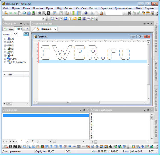 UltraEdit - мощный многооконный текстовый редактор с гибкой системой настроек, который также имеет встроенный FTP клиент для закачки документов на ваш сервер. С помощью этой программы вы сможете редактировать текстовые, HEX и HTML файлы размером до 2 ГБ. В программе имеется функция подсветки синтаксиса для различных языков, включая C/C++, VB, HTML, Java, Perl, FORTRAN и LaTex. Кроме того, предусмотрена возможность подключения дополнительных словарей с синтаксисом других языков, библиотек тегов и макросов. Программа является гибкой и легкой в настройке, а изысканный пользовательский интерфейс программы предоставляет легкий и быстрый доступ к самым важным функциям UltraEdit.