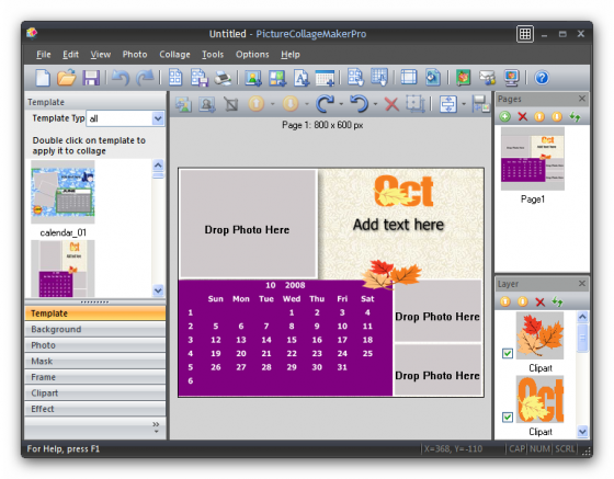 Picture Collage Maker - простая в использовании программа для создания коллажей из ваших фотографий. Простой интерфейс программы и множество шаблонов позволят легко создавать разнообразные фотоколлажи (календари, поздравительные открытки, пригласительные билеты, постеры и т.д.) даже неопытным пользователям.