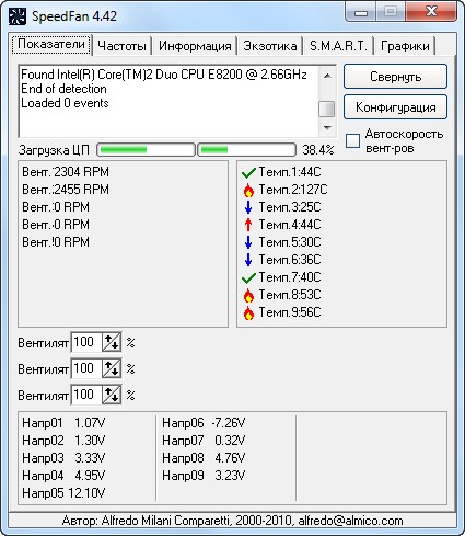 SpeedFan - системная утилита для контроля за параметрами материнской платы.