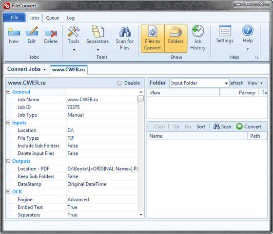 FileConvert программа для конвертирования различных файлов в PDF документы в пакетном режиме. С помощью этой программы вы сможете преобразовать существующие файлы, такие как: сканы документов, факсы и документы Word в PDF форматы с возможностью текстового поиска. Программа будет следить за новыми сканами с сетевого сканера или сканировать существующие файлы в PDF. Для этого вам нужно создать новое задание, в котором вы указываете путь до папки приходящих со сканера изображений в формате TIFF, указываете папку для сохранения преобразованных файлов, промежуток времени, через который программа должна проверять исходящую папку на наличие новых сканов (можно установить ручную проверку) и все. FileConvert был специально разработан для небольших офисов, в составе которых нет выделенного для таких задач ИТ-персонала.