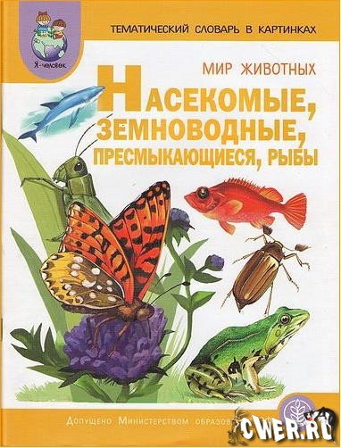 В книгу вошли картинки с изображением отдельных насекомых (бабочка, комар, стрекоза), земноводных (лягушка), пресмыкающихся (змея, черепаха), рыб (ерш, окунь, щука, акула). Более крупные картинки иллюстрируют обобщающие понятия, например, насекомых, среду обитания животных - болото, озеро и т. д.