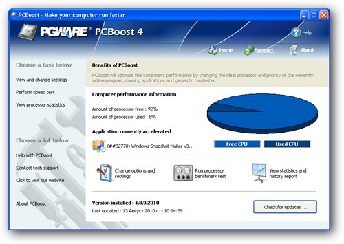 PCBoost - небольшое приложение, увеличивающее быстродействие ПК за счет перераспределения загрузки центрального процессора. PCBoost совместима со всеми версиями Microsoft Windows и с большинством ПО.