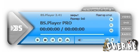 BS Player - мультимедийный проигрыватель, позволяющий воспроизводить практически любые мультимедийные файлы, но для этого нужно, чтобы в системе были установлены соответствующие кодеки. Программа может работать с плейлистами, уменьшать или увеличивать видеокартинку, воспроизводить потоковое видео из интернета, при необходимости показывать субтитры. Если нужно, то можно расширить опции плеера, подключая к нему различные плагины. Данный мультимедийный плеер не требователен к системным ресурсам, поддерживает смену скинов. Также позволяет автоматически распаковывать и воспроизводить содержимое RAR архивов. Профессиональная версия плеера предлагает возможности тонкой настройки эквалайзера, опцию захвата видео и аудио с ТВ-тюнера, цифровой камеры и прочего, а также улучшенную поддержку субтитров и VMR9. Имеет поддержку смены скинов интерфейса и мультиязычность, включая поддержку русского языка.