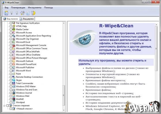 R-Wipe & Clean - эффективная утилита очистки дискового пространства и сохранения конфиденциальности информации. Это приложение полностью удалит временные интернет файлы, журнал посещенных страниц, кукисы, автозаполняемые формы и пароли, файлы подкачки, список недавно использовавшихся документов, список часто используемых компонентов, хранящихся в системном реестре, временные файлы и многое другое. Сделает невозможным восстановление конфиденциальной информации о вашей сетевой или локальной активности. Также программа удалит оставшуюся на компьютере информацию о работе более чем 200 приложений. Утратившие необходимость файлы и папки могут быть объединены в списки и удалены за один раз. Программой поддерживаются файловые системы FAT и NTFS. Различные задачи программы могут быть объединены в одну или более процедур и выполнены как сразу, так и в определенное время или при определенном событии в автоматическом режиме.