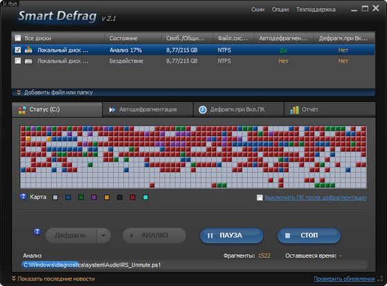 SmartDefrag — простая в использовании программа для дефрагментации диска, предотвращающая торможения, зависания и сбои системы. После установки IObit SmartDefrag переходит в автоматический режим работы и незаметно для пользователя и производительности системы дефрагментирует файлы во время обычной работы компьютера.