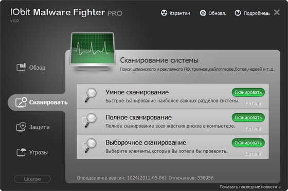IObit Malware Fighter — приложение, специализирующееся на выявлении, уничтожении или просто блокировке вредоносного или нежелательного программного обеспечения. Содержит встроенный сканер для проверки компьютера на наличие Malware-угроз, который имеет режимы быстрого, полного и выборочного сканирования.