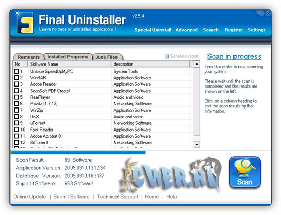 Final Uninstaller - программа позволяет очищать жесткий диск и системный реестр от мусора, оставшегося после удаления каких-либо программ. Программа использует высокоэффективный алгоритм обнаружения, который позволяет быстро просканировать систему и найти ненужные файлы и записи в системном реестре для каждой установленной программы на вашем компьютере. За несколько щелчков мыши программа просканирует ваш жесткий диск и реестр Windows, после чего предоставит вам список приложений, которые были неправильно деинсталлированы. После чего вы сможете выбрать приложения для последующего их полного удаления с компьютера. Программа имеет понятный пользовательский интерфейс и проста в использовании, поэтому подходит для любого пользователя.